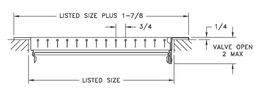 - Rear damper blades for volume control on 1" spacings. When closed, damper blades interlock to prevent air leakage.