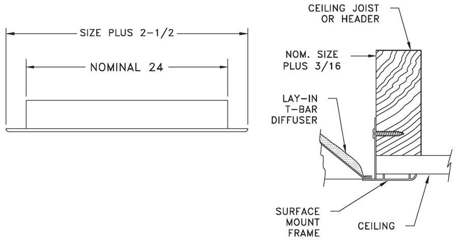 Model AL10PF plaster frame allows installation of lay-in diffusers into framed sheet rock openings.