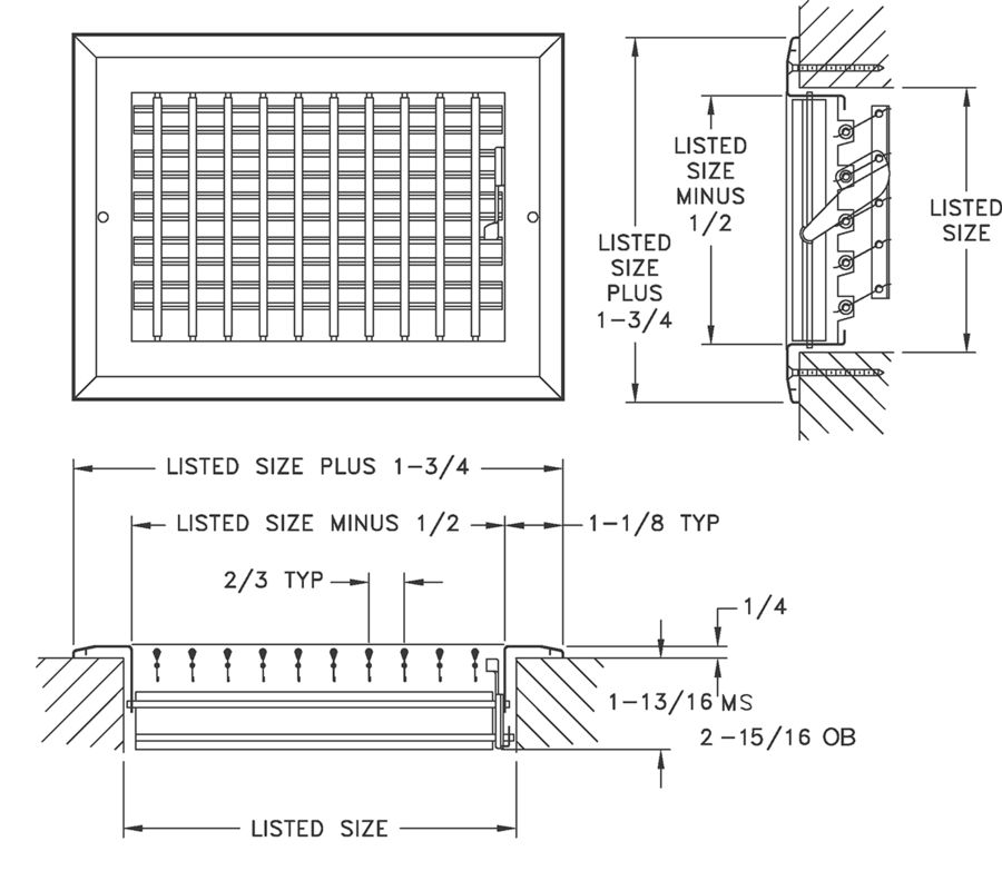 AL278 — Adjustable Straight Blade Sidewall Register with Multi-Louver Damper