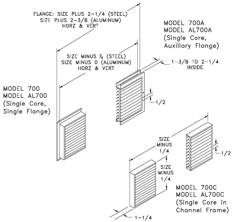 - Model 700 has a 1-1/4" border. Model AL700 has a 1-1/2” border.