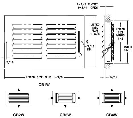 - Series CB is a stamped, curved blade register with multi-louver damper for ceiling or sidewall installation