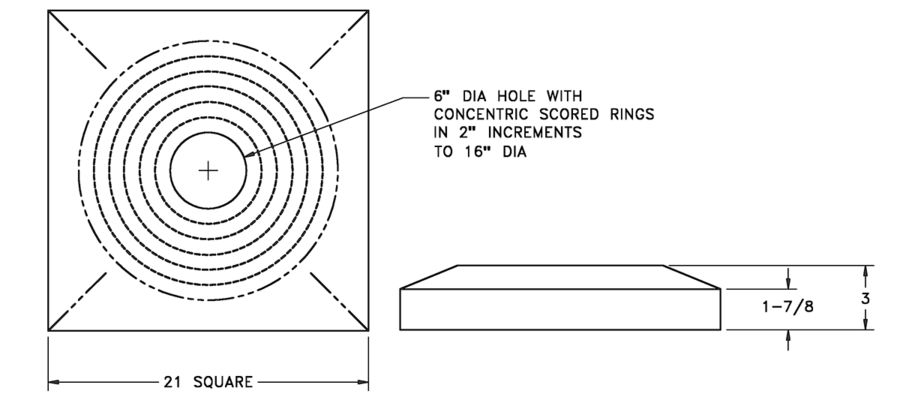 - 6" diameter hole with scored concentric rings in 2" increments for easy installation