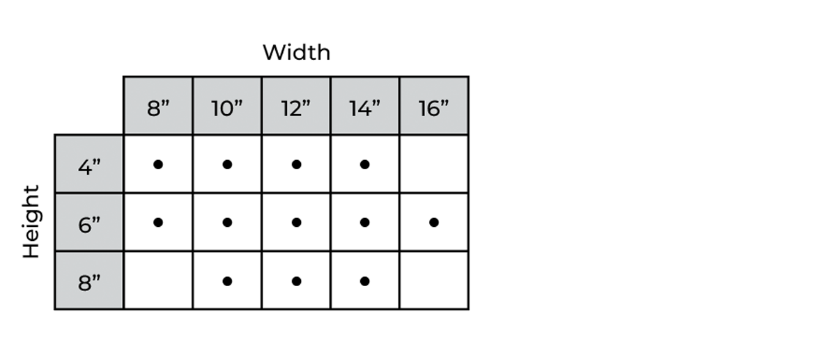 Available sizes